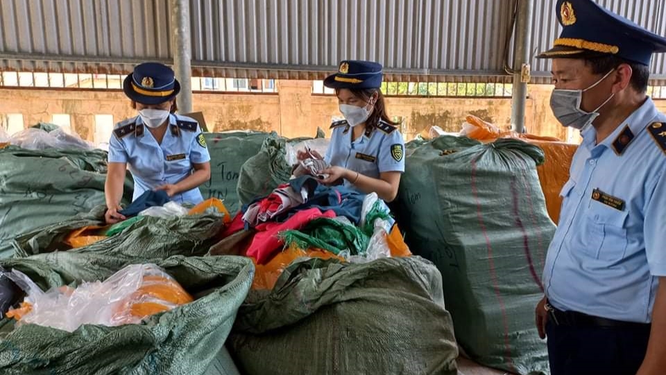 Đội QLTT số 3 - Cục QLTT tỉnh Quảng Trị tạm giữ gần 2.400 sản phẩm may mặc nhập lậu.
