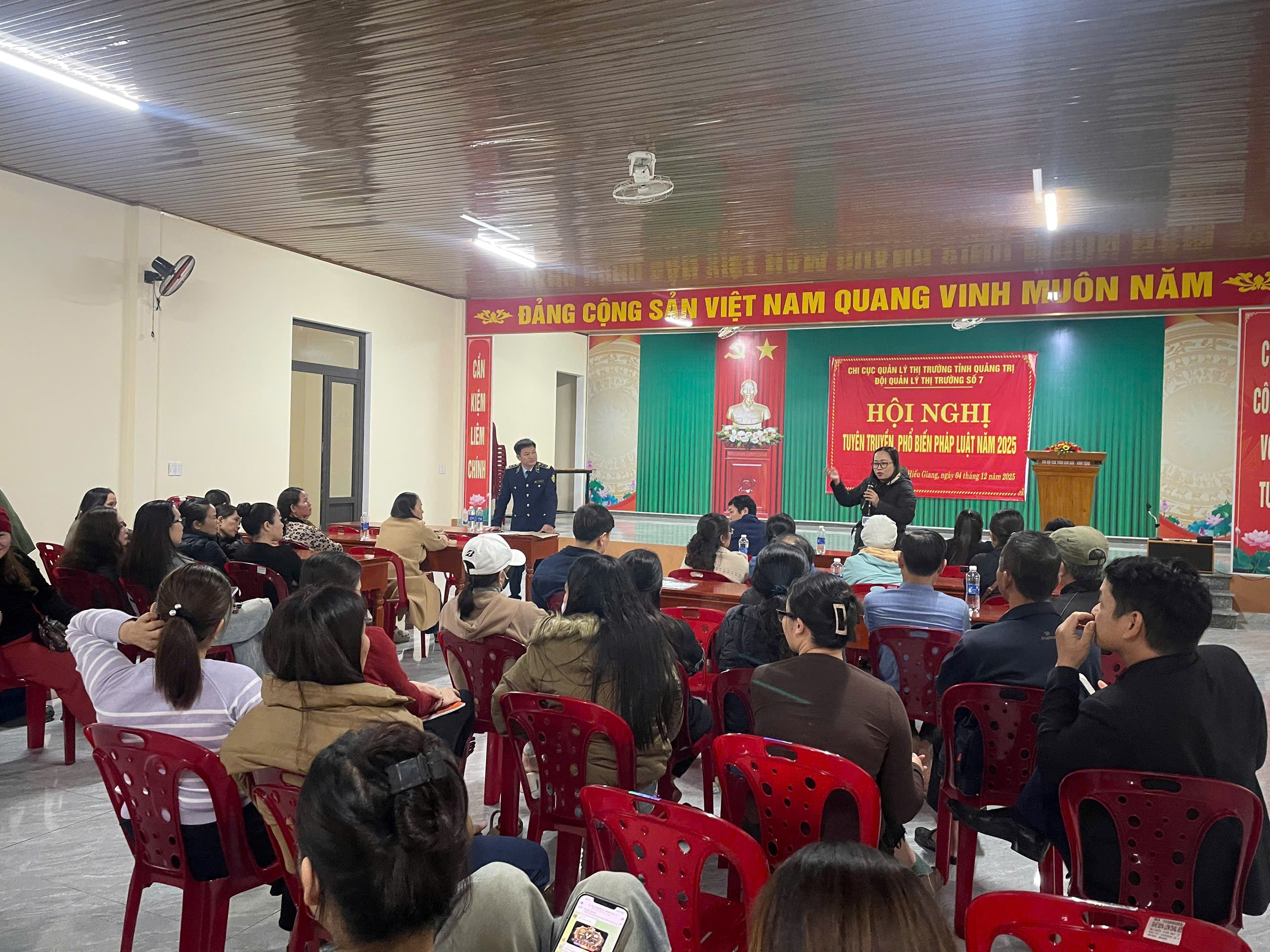 Theo đó, ngày 04/12/2025, tại Hội trường nhà văn hóa thôn Kim Đâu, xã Hiếu Giang (tỉnh Quảng Trị), Đội Quản lý thị trường số 7 đã tổ chức Hội nghị tuyên truyền, phổ biến pháp luật cho khoảng 60 cơ sở kinh doanh nhóm hàng hóa do Thái Lan sản xuất - một nhóm mặt hàng đang được tiêu thụ mạnh tại địa bàn. Sự kiện được xem như một hoạt động thiết thực giúp các hộ kinh doanh nâng cao hiểu biết pháp luật, hướng đến môi trường kinh doanh minh bạch, lành mạnh.