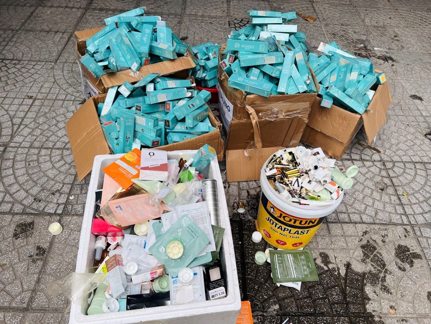 Tang vật vi phạm buộc tiêu hủy gồm có 230 sản phẩm áo quần các loại giả mạo các nhãn hiệu của adidas, của NIKE và của BURBERRY; 10 cái áo phông nam và 10 đôi dép nam giả mạo nhãn hiệu của BURBERRY; 1.193 sản phẩm mỹ phẩm các loại gồm: sữa rửa mặt, tẩy tế bào chết, kem dưỡng da, mặt nạ dưỡng da, keo xịt tóc, dầu dưỡng tóc, kem nhuộm tóc, sơn gel (dùng để sơn móng tay, móng chân) nhập lậu, không rõ nguồn gốc xuất xứ và giả mạo các nhãn hiệu đang được bảo hộ tại Việt Nam. Hình thức tiêu hủy tang vật đối với hàng hóa áo quần, dép giả mạo nhãn hiệu là sử dụng dao, kéo để cắt toàn bộ sản phẩm và các nhãn hiệu giả mạo được in trực tiếp trên sản phẩm thành các mảnh nhỏ để đảm bảo sản phẩm không thể tái sử dụng; đối với mỹ phẩm nhập lậu, không rõ xuất xứ và giả mạo nhãn hiệu là mở toàn bộ bao bì chứa đựng sản phẩm (các chai, hộp, tuýp…), sau đó đổ toàn bộ mỹ phẩm vào các chậu có chứa nước, đảm bảo toàn bộ số mỹ phẩm này bị hòa tan vào nước hoặc bị làm ướt hoàn toàn không thể tái sử dụng được.