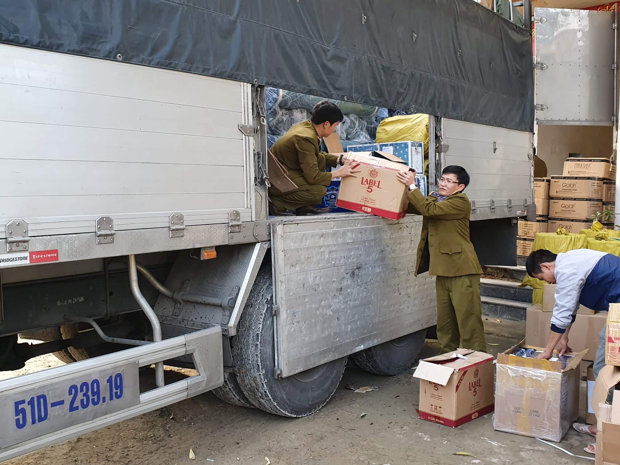 Qua kiểm tra phát hiện trên phương tiện có vận chuyển hàng cấm và hàng nhập lậu gồm: 750 bao thuốc lá điếu hiệu 555 Gold; 164 chai rượu gồm Chival Regal 18 years old, Royal Salute 21 years old, Label Five Blened Scotch Whisky, Belle France Bordeaux 2015, Château Chabinet 2013 Bordeaux và 454 đôi dép hiệu Pepperts, Esmara các loại do nước ngoài sản xuất. Tại thời điểm kiểm tra, tài xế không xuất trình được các giấy tờ chứng minh tính hợp pháp của số hàng hóa nói trên, trị giá lô hàng ước tính 236 triệu đồng.