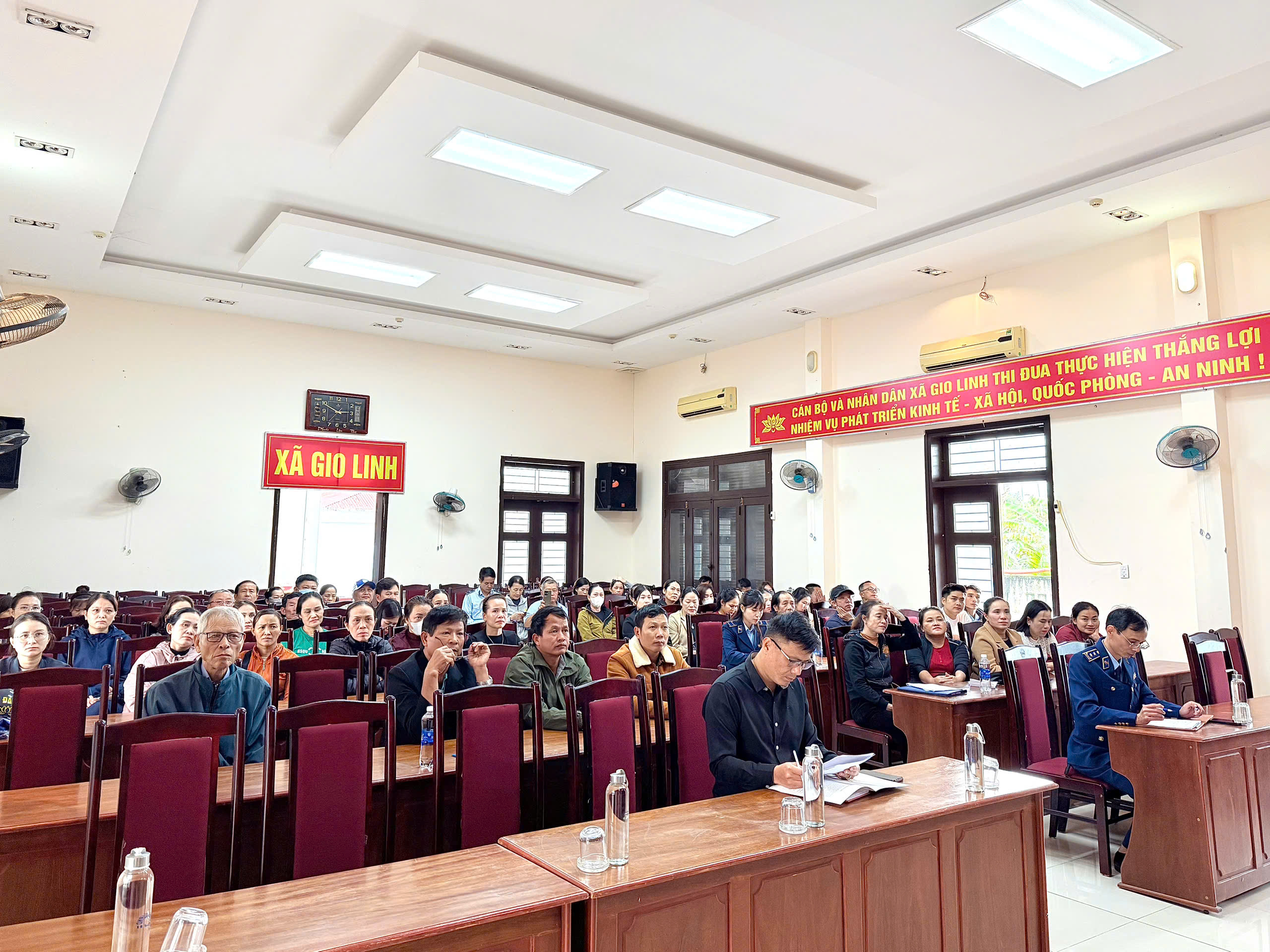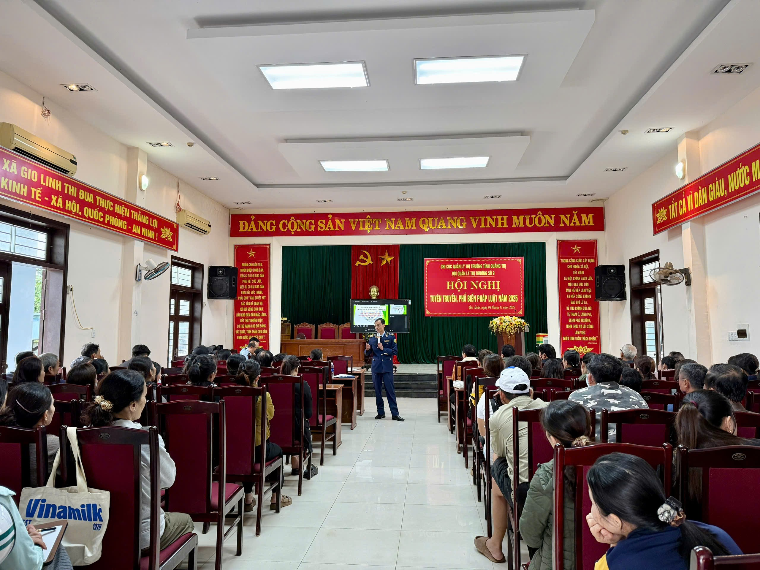 Thực hiện Quyết định số 286/QĐ-CCQLTT ngày 07/10/2025 của Chi cục Quản lý thị trường tỉnh Quảng Trị về việc ban hành Kế hoạch truyền thông, tuyên truyền, phổ biến pháp luật năm 2025, ngày 04/11/2025, Đội Quản lý thị trường số 9 phối hợp với UBND xã Gio Linh tổ chức Hội nghị tuyên truyền, phổ biến pháp luật năm 2025.