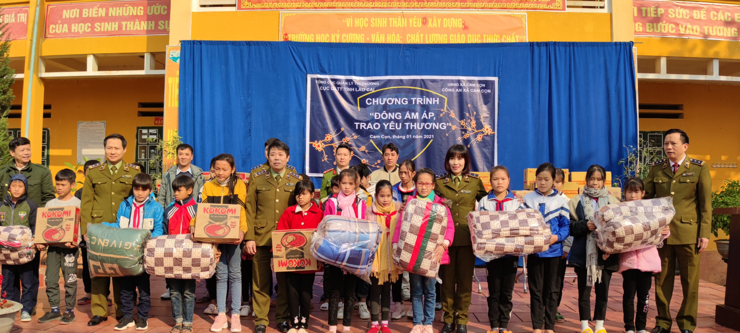 Trong không khí mùa đông giá rét, ở đâu đó vẫn còn những em nhỏ có hoàn cảnh khó khăn không đủ ấm. Nhằm kịp thời chia sẻ những khó khăn, vất vả, thiếu thốn của học sinh vùng cao trong mùa đông giá rét, ngày 18/01/2021 Cục QLTT tỉnh Lào Cai đã tổ chức Chương trình “Đông ấm áp –Trao yêu thương” tại trường tiểu học, THCS bán trú xã Cam Cọn, huyện Bảo Yên, tỉnh Lào Cai.