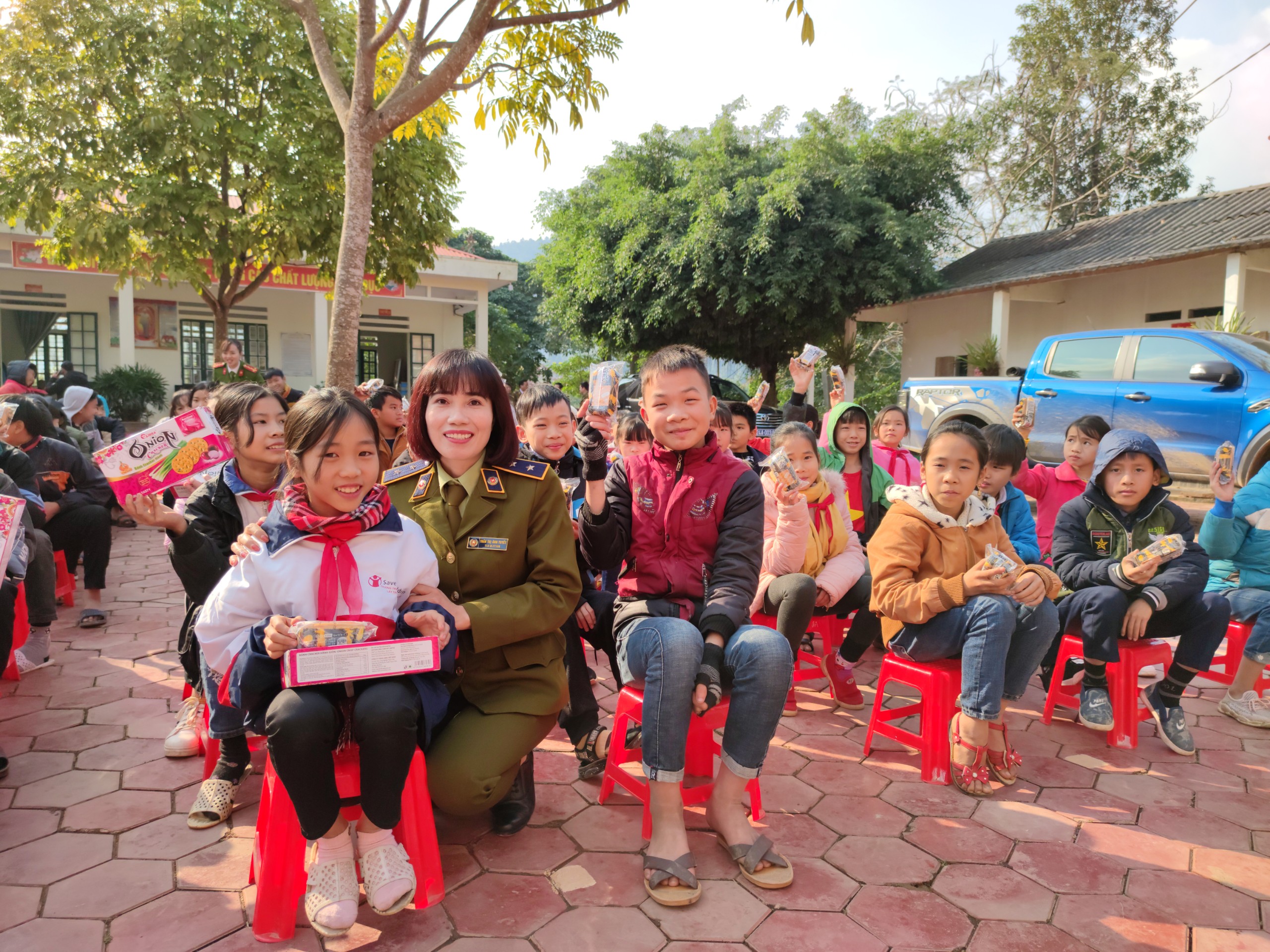 Niềm vui của các cháu học sinh khi nhận những phần quà ấm áp từ Cục QLTT tỉnh Lào Cai
