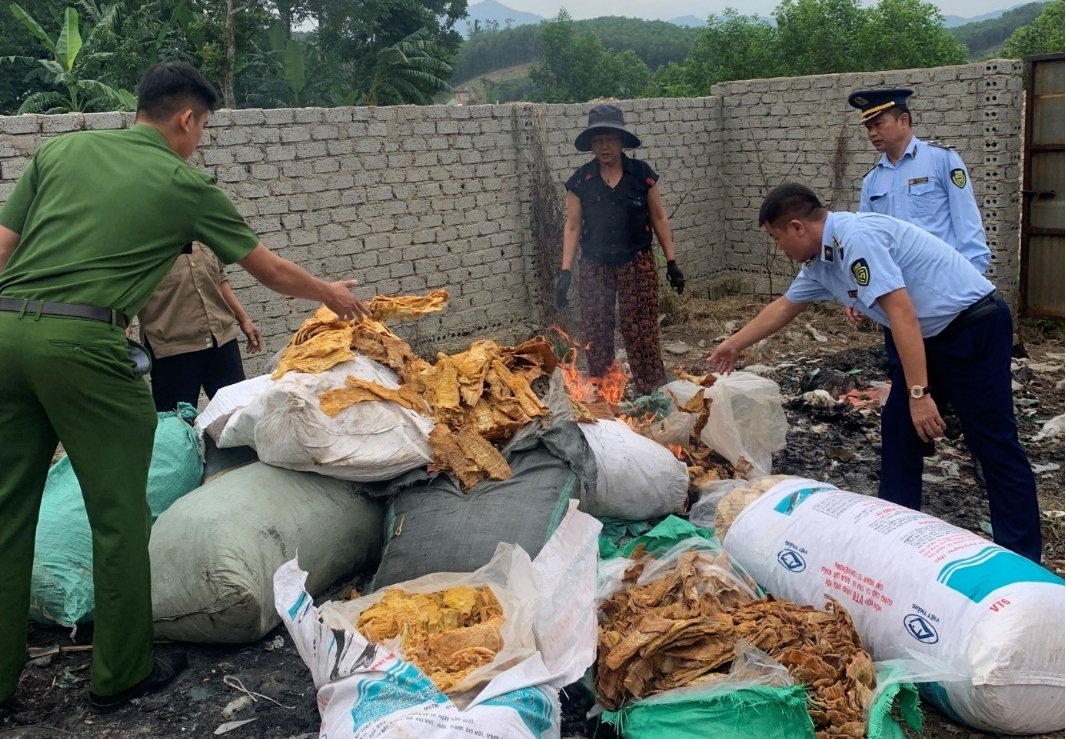 Hình ảnh kiểm tra và tiêu hủy hàng hóa vi phạm